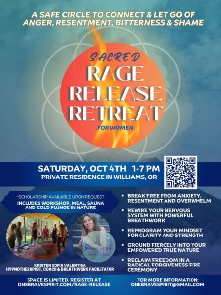 Rage Release Retreat is an in person workshop dedicated to holding a sacred container for truth seekers who are ready to release anger that has been stored within and discover the wisdom behind rage.